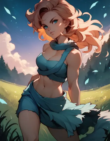 ayla: ayla, 裸の肩、お腹、胸元、毛皮、毛皮のスカート