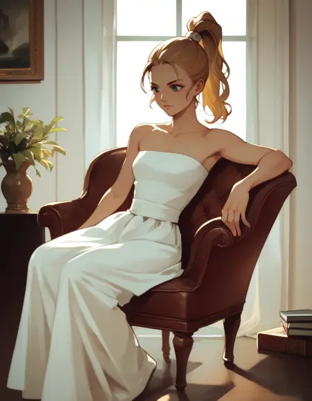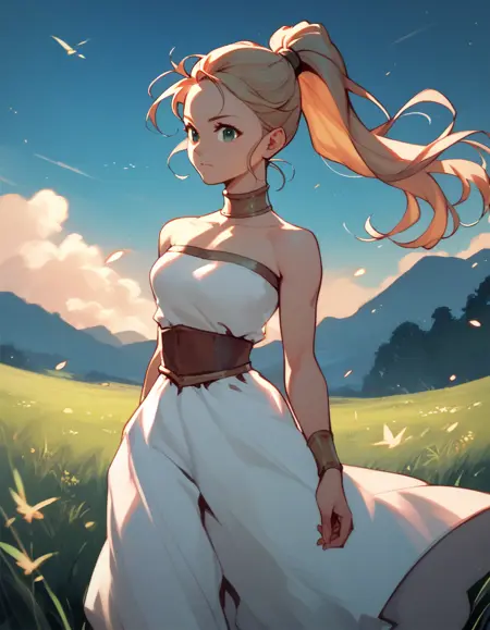 marle: marle, ポニーテール、ストラップレスドレス、白いドレス