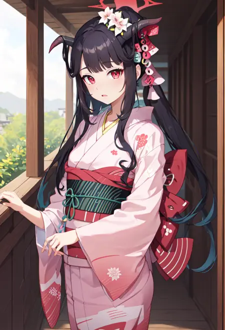 - 축소된 캐릭터 태그는 긴 머리카락, 뿔, 검은 머리카락, 환상, 악마의 뿔, 붉은 눈, 쌍머리입니다. 캐릭터의 핵심 특징(예: 머리카락 색상)이 안정적이지 않을 때 이러한 태그를 프롬프트에 추가할 수 있습니다.