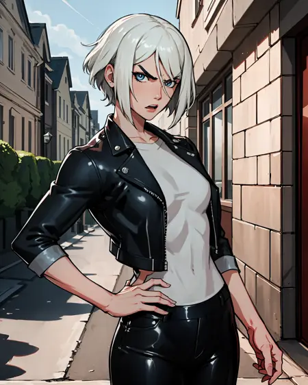 Appearance: MsY, 1girl, short hair, white hair, blue eyes