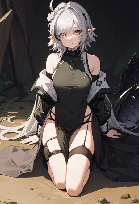 - 省略されたキャラクタータグは、とがった耳、ワニの尾、尾、あほ毛、黄色い目、灰色の髪、長い髪、大きな尾、胸、縞模様の髪、多色の髪です。キャラクターの主な特徴(例:髪の色)が安定しない場合、これらのタグをプロンプトに追加できます。