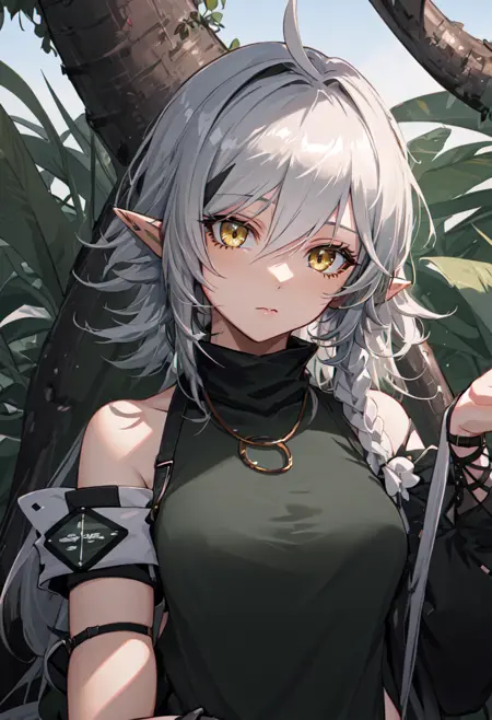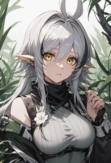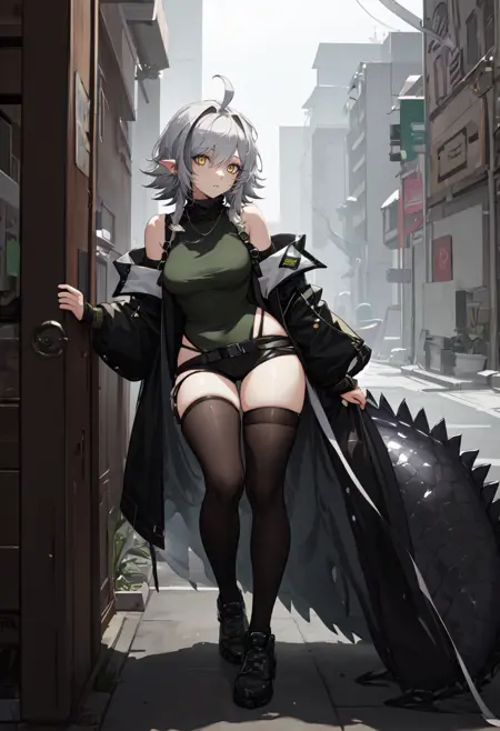 トリガー単語はtomimi_arknights、省略されたタグはpointy_ears, crocodilian_tail, tail, ahoge, yellow_eyes, grey_hair, long_hair, large_tail, breasts, streaked_hair, multicolored_hairです。ある時、特定の特徴(例:髪の色)が安定しない場合、これらのタグをプロンプトに追加できます。