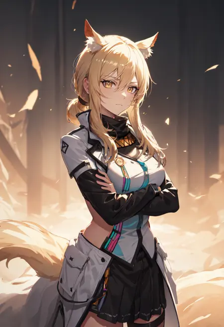 트리거 단어는 nearl_arknights이며, 축소된 태그는 animal_ears, blonde_hair, long_hair, horse_ears, animal_ear_fluff, horse_girl, yellow_eyes, tail, ponytail, horse_tail, hair_between_eyes, breasts, large_breasts입니다. 어떤 특징(예: 머리카락 색상)이 일정 시점에서 안정적이지 않을 경우, 이 태그들을 프롬프트에 추가할 수 있습니다.