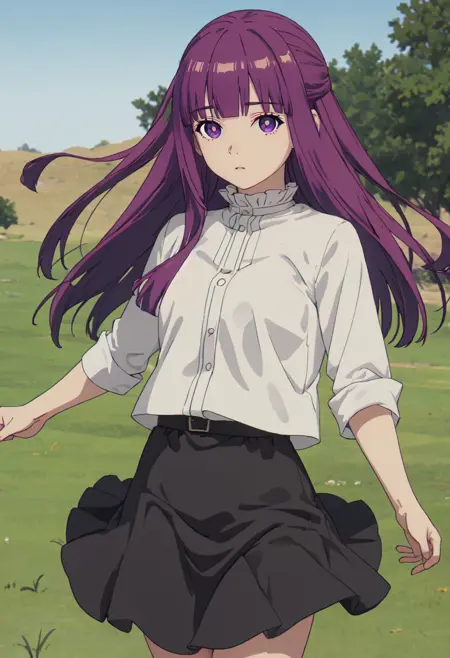 The trigger word is fern_sousounofrieren, and the pruned tags are purple_hair, long_hair, blunt_bangs, purple_eyes, straight_hair, sidelocks. When some features (e.g. hair color) are not so stable at some times, you can add these them into your prompt.