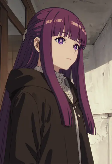 The trigger word is fern_sousounofrieren, and the pruned tags are purple_hair, long_hair, blunt_bangs, purple_eyes, straight_hair, sidelocks. When some features (e.g. hair color) are not so stable at some times, you can add these them into your prompt.