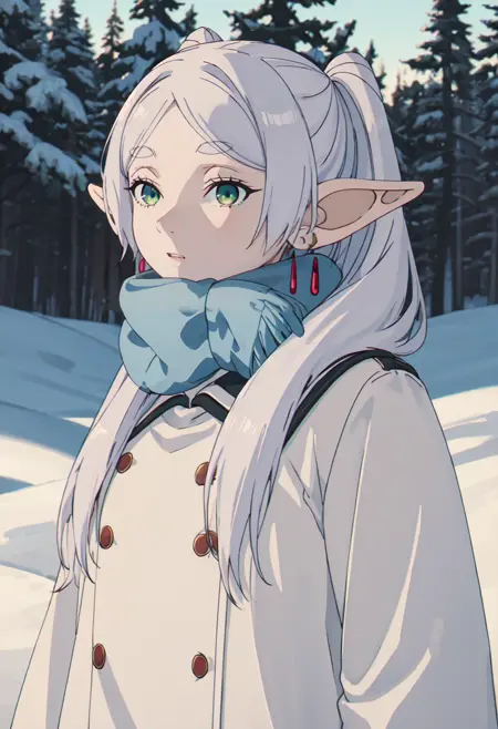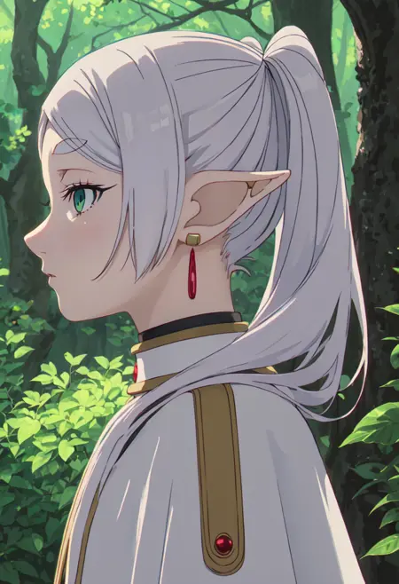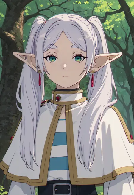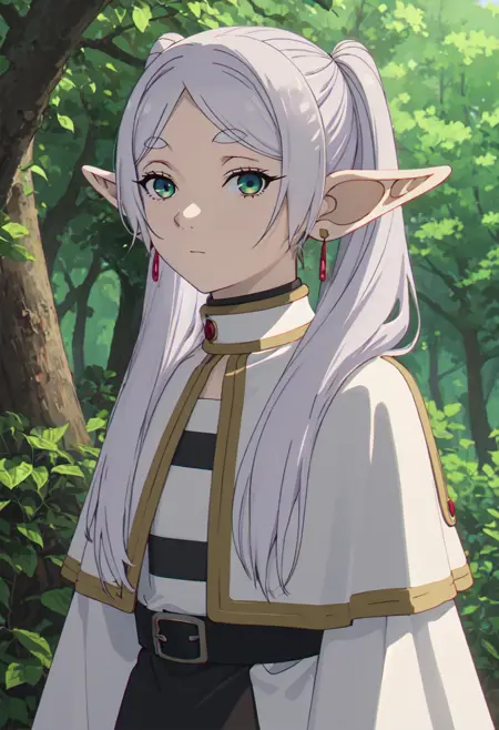 トリガーワードは frieren_sousounofrieren であり、削除されたタグは pointy_ears, long_hair, white_hair, twintails, earrings, green_eyes, parted_bangs, grey_hair, dangle_earrings です。あるときキャラクターの特徴(例:髪の色)が安定しない場合、これらのタグをプロンプトに追加してください。