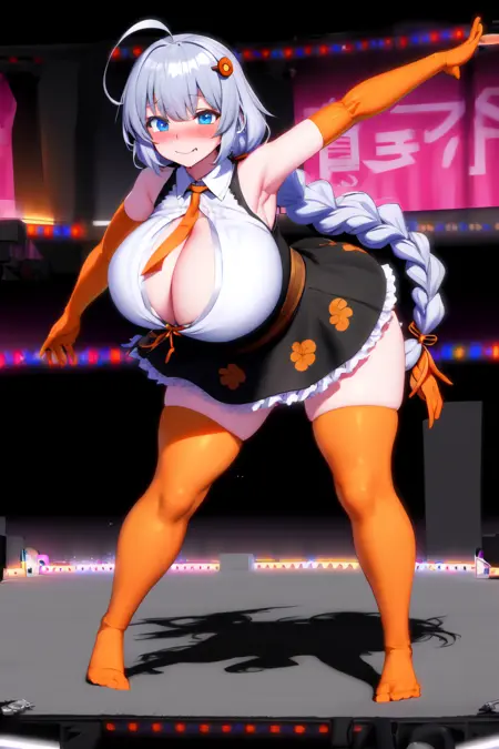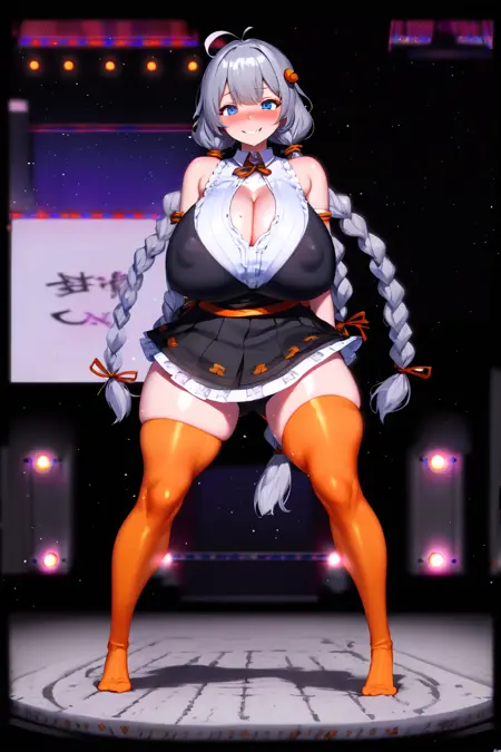 lora:KizunaAkari_RX_V01:1kizuna_akari,kizuna akari, blue eyes, cleavage, huge breasts, Plump thighs,