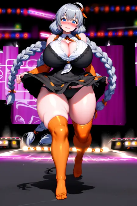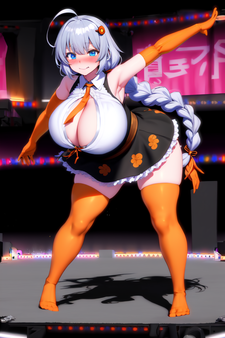 lora:KizunaAkari\_RX\_V01:1kizuna_akari,kizuna akari, blue eyes, cleavage, huge breasts, Plump thighs,