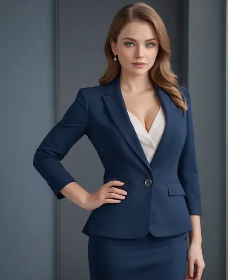 Full-length hyperrealistic photograph of a beautiful woman, 28 years old, athletic body, very light brown hair, ((light and bright blue eyes)), small earring in right ear, very long eyelashes, sensual lips, provocative and expression. big breasts,, wearing an elegant black dress