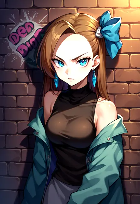 KatarinaClaes, long hair, asymmetrical bangs, hair bow