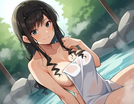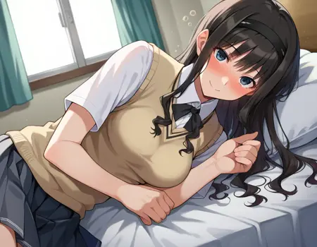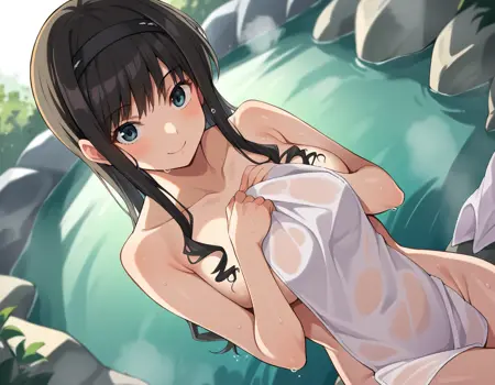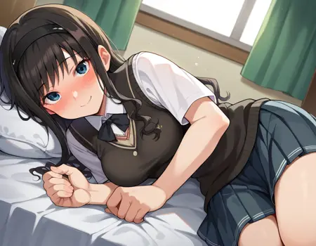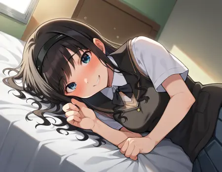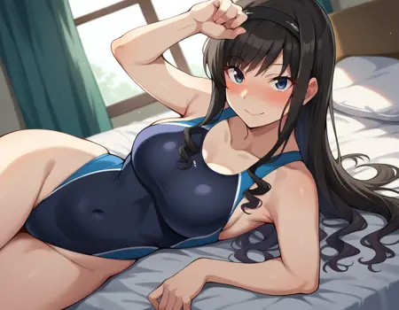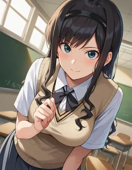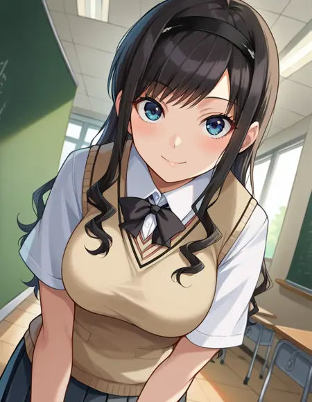haruka morishima, long hair, black hair, hairband, black hairband,