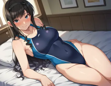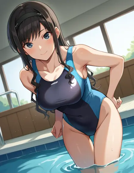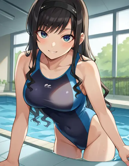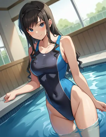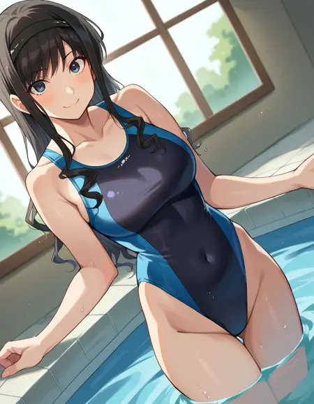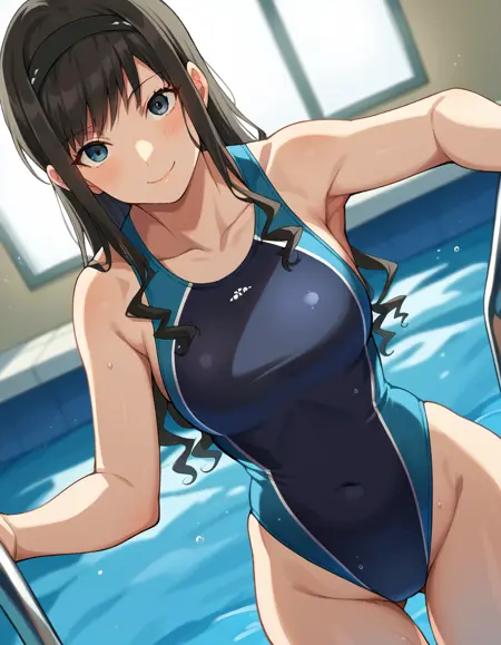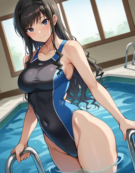 black one-piece swimsuit, blue one-piece swimsuit, collarbone, competition swimsuit, covered navel, highleg, highleg swimsuit, one-piece swimsuit, swimsuit, two-tone swimsuit,