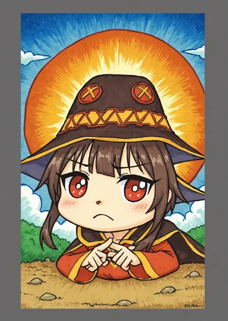 권장 추가 프롬프트: 치비, 손 흔들기, 파동, 전통 예술, 전통 매체
