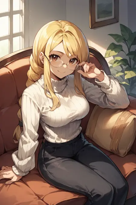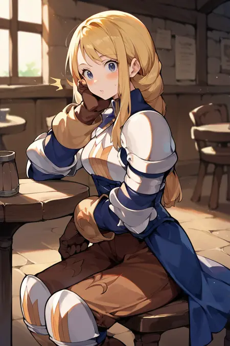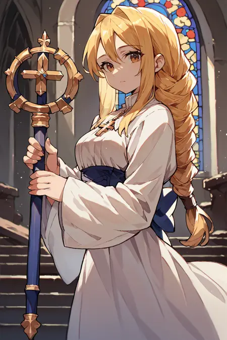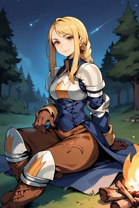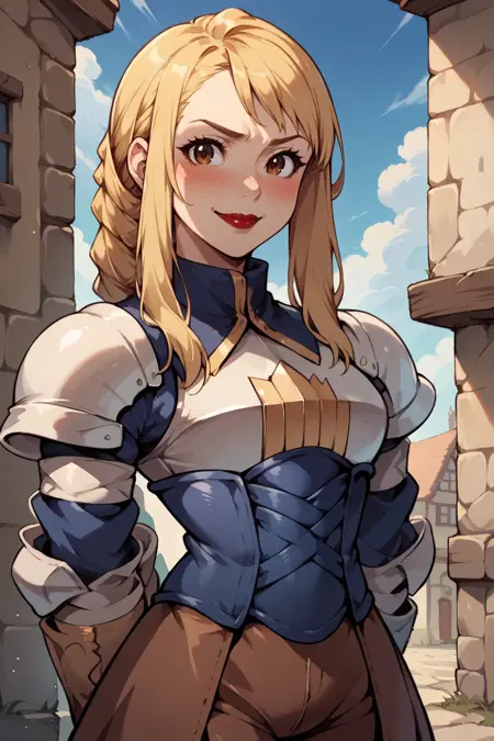 Trigger word is "agrias" and "blonde hair, braided ponytail" is required.