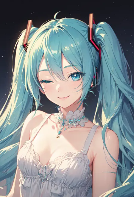 - The pruned character tags are long hair, twintails, very long hair, aqua hair, aqua eyes, blue hair, blue eyes, hair ornament, hair between eyes, breasts. You can add them into prompts when core features (e.g. hair color) of character is not so stable.