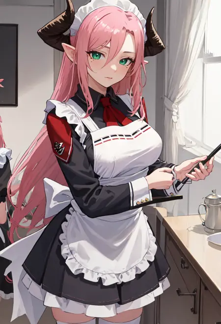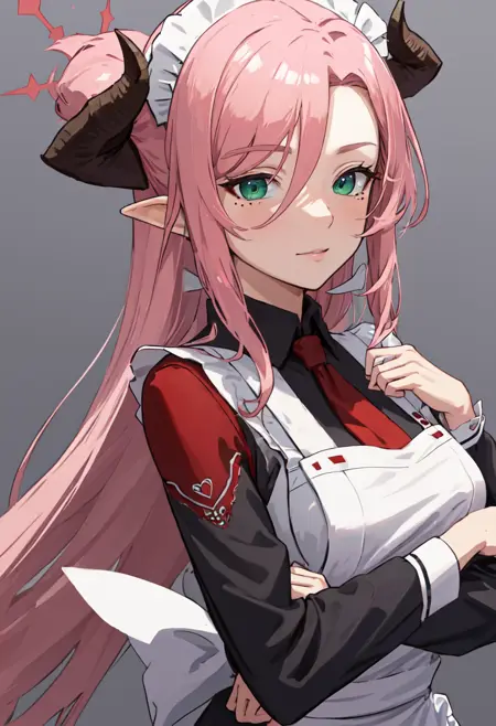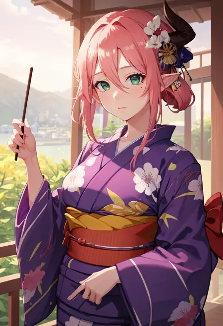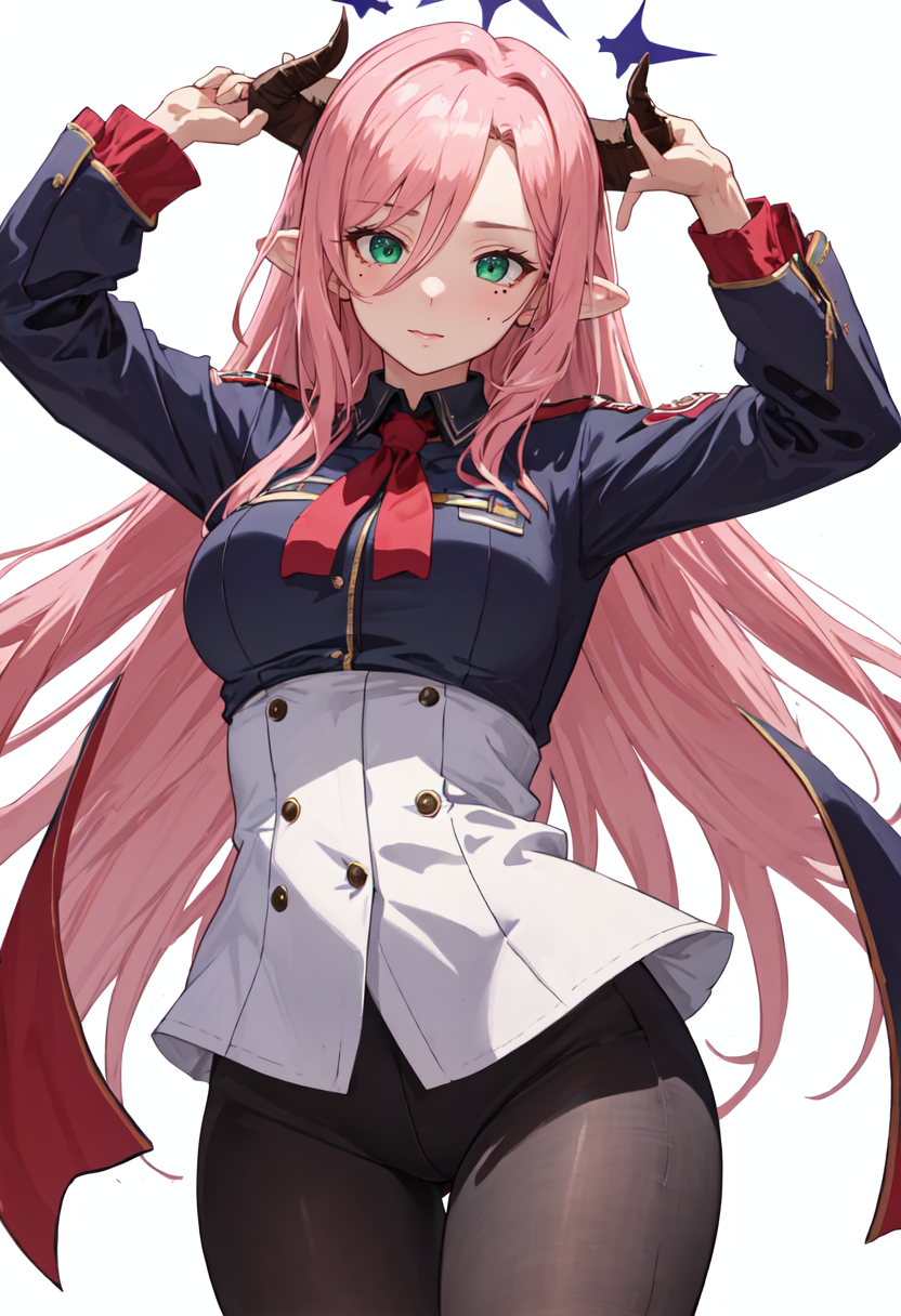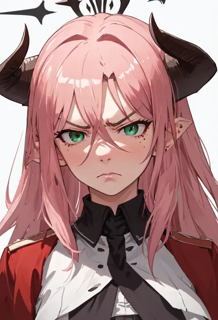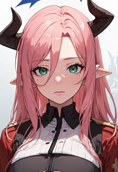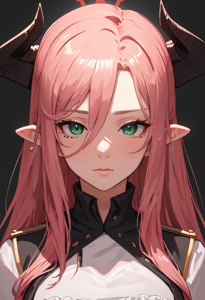 - The pruned character tags are horns, long hair, pink hair, pointy ears, hair between eyes, halo, breasts, demon horns, mole, very long hair, mole under eye, large breasts, green eyes. You can add them into prompts when core features (e.g. hair color) of character is not so stable.