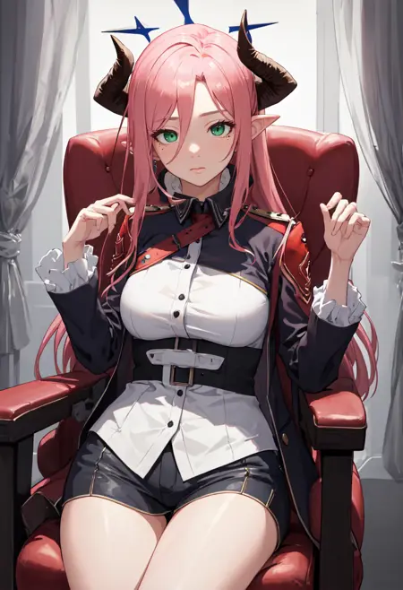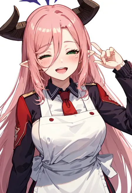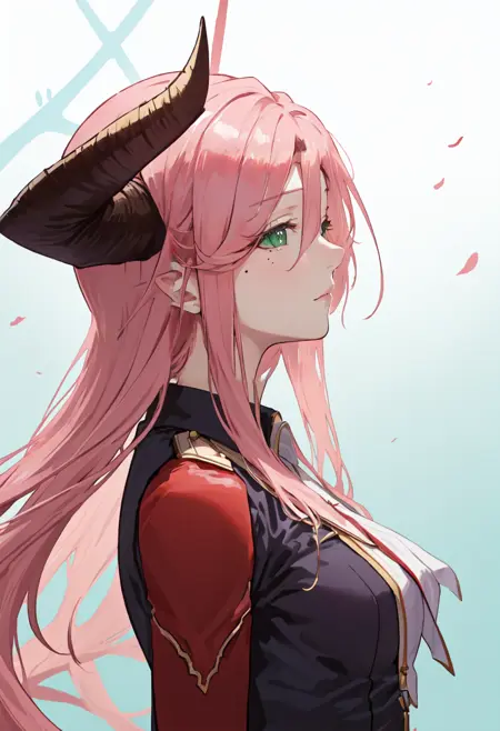 The trigger word is juri_bluearchive, and the pruned tags are horns, long_hair, pink_hair, pointy_ears, hair_between_eyes, halo, breasts, demon_horns, mole, very_long_hair, mole_under_eye, large_breasts, green_eyes. When some features (e.g. hair color) are not so stable at some times, you can add these them into your prompt.