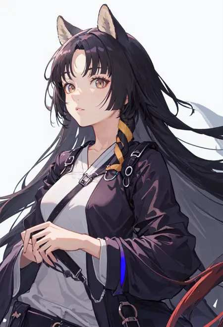 The trigger word is saga_arknights, and the pruned tags are black_hair, dog_ears, animal_ears, long_hair, facial_mark, parted_bangs, very_long_hair, brown_eyes, dog_girl. When some features (e.g. hair color) are not so stable at some times, you can add these them into your prompt.