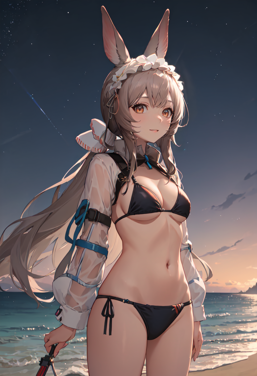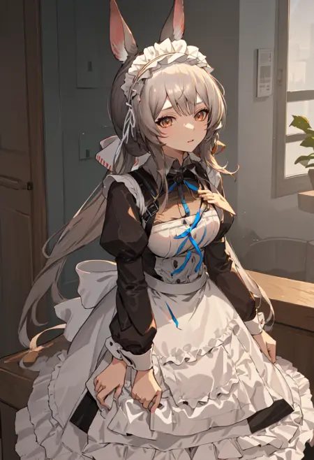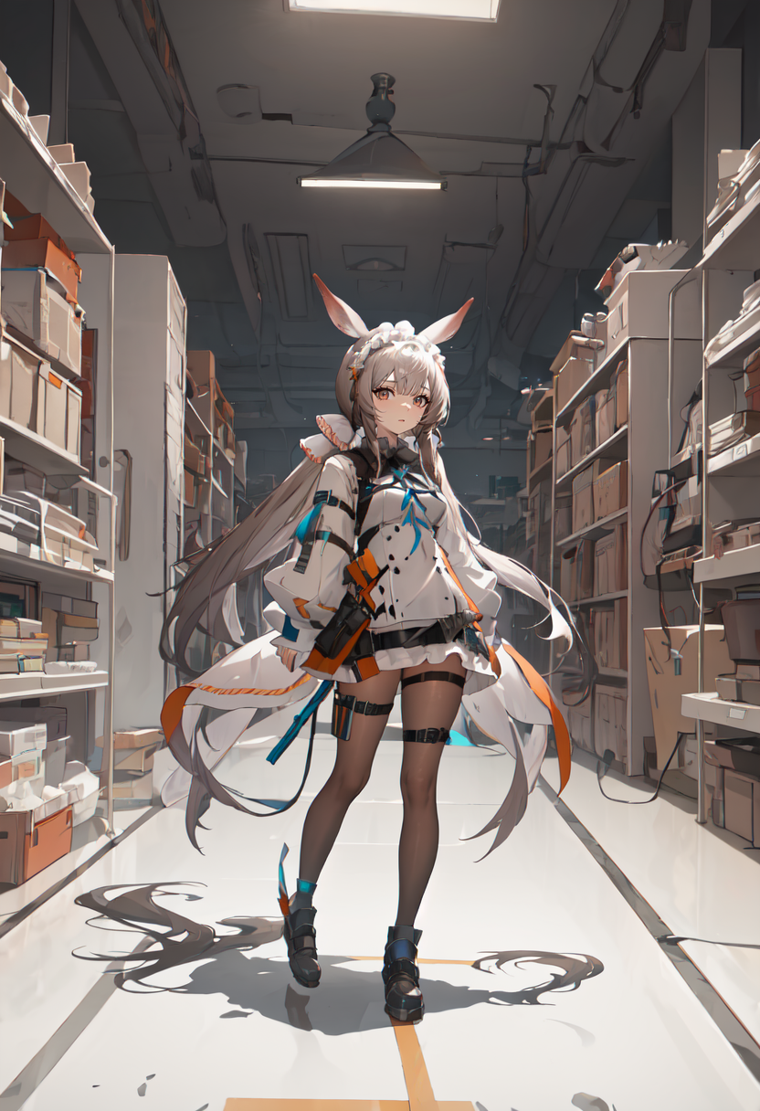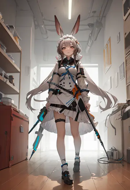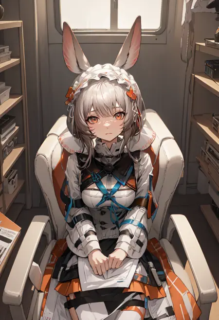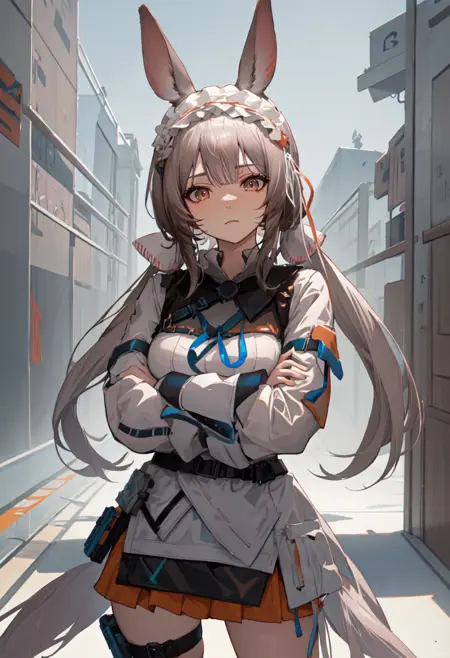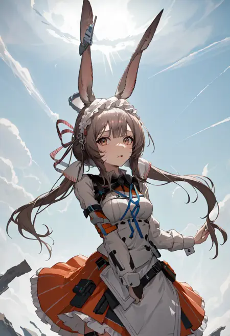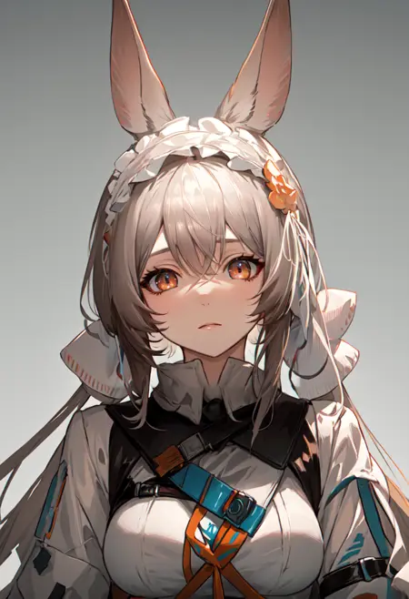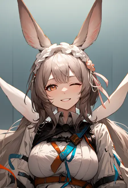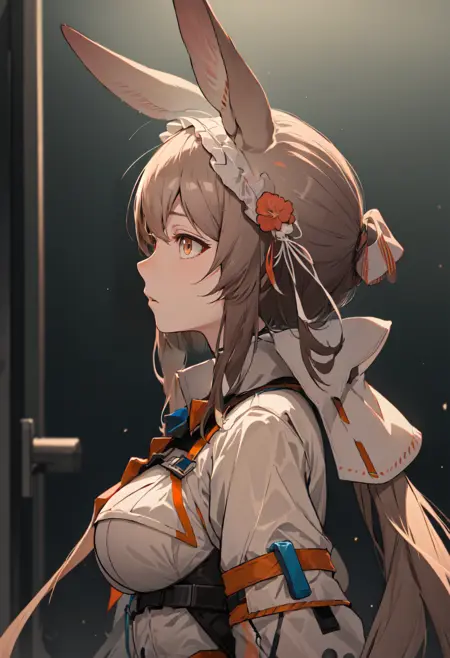 The trigger word is warmy_arknights, and the pruned tags are animal_ears, long_hair, rabbit_ears, brown_hair, twintails, very_long_hair, brown_eyes, hair_ornament, hairband, bow, grey_hair, low_twintails, rabbit_girl. When some features (e.g. hair color) are not so stable at some times, you can add these them into your prompt.