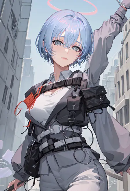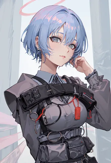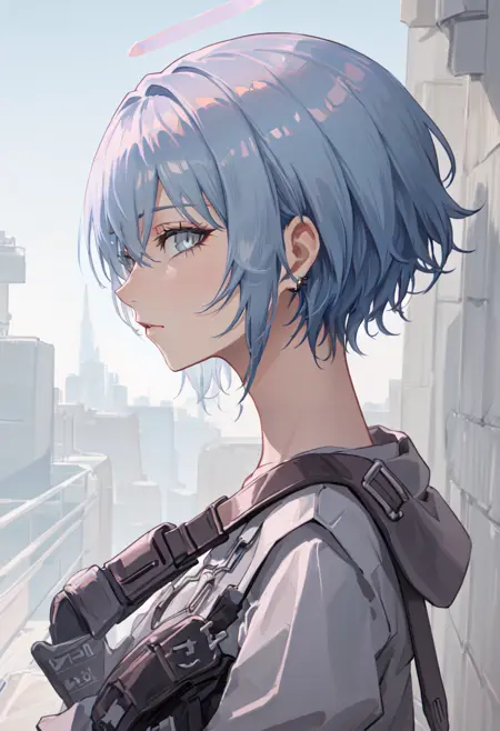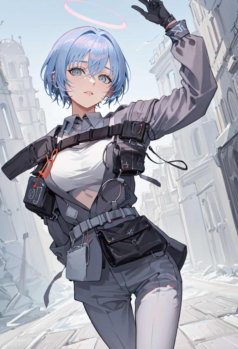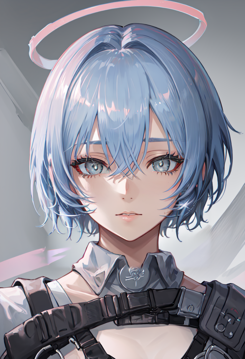 - The pruned character tags are short hair, halo, blue hair, breasts, hair between eyes, grey eyes, wings. You can add them into prompts when core features (e.g. hair color) of character is not so stable.
