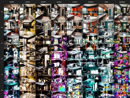 GridTable: standard rectangle grid, with labeled columns and raws. By default, iterates through different keywords of DecorationsBundle LoRA. Uses WAS Node Suite.