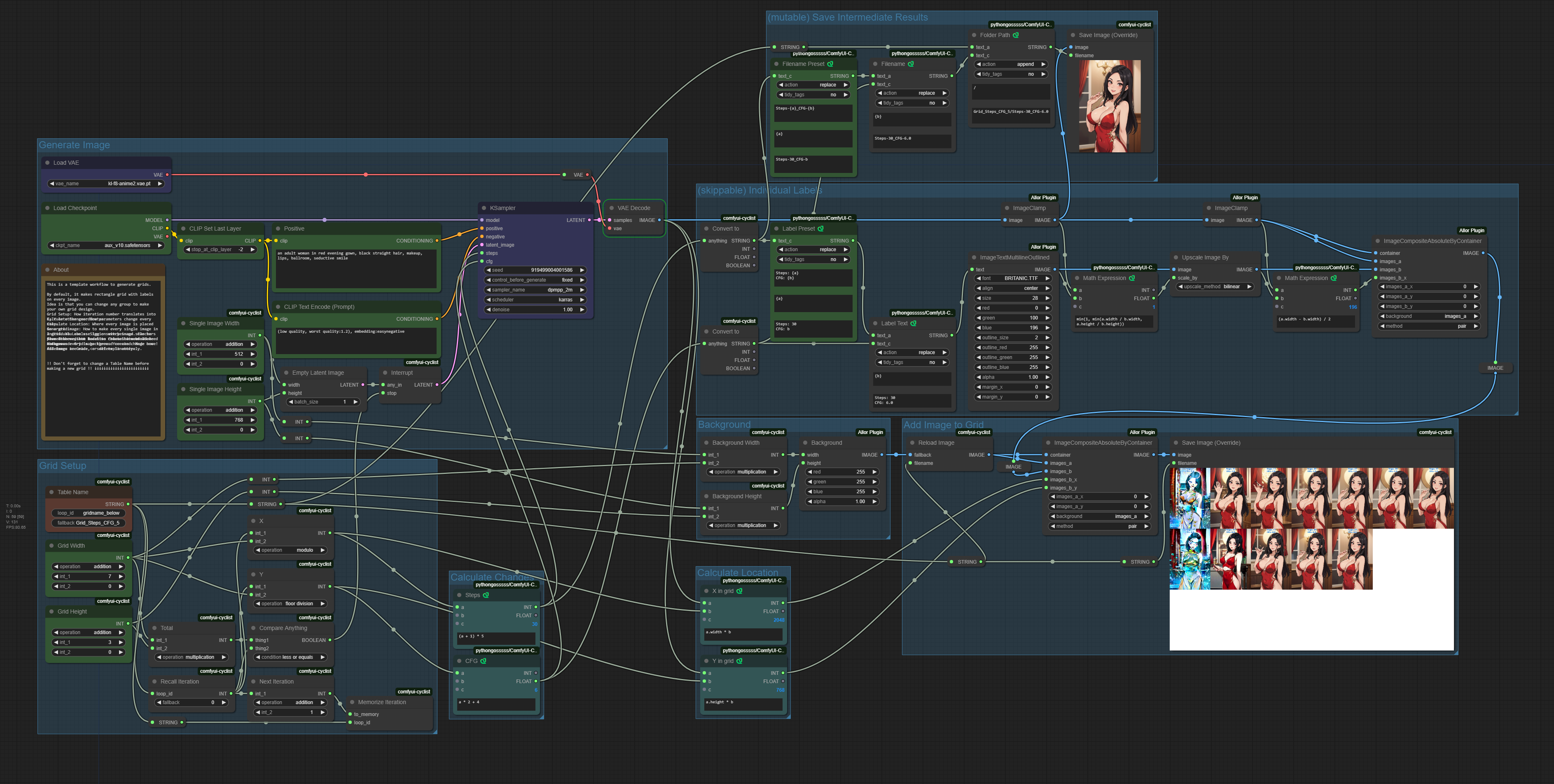 This is a template workflow to generate grids of images. It's designed to be tuned by youself, and it's very versatile: