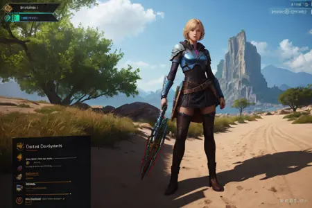 Vydia 是一个 LoRA 模型,有助于生成类似电子游戏的界面并风格化不同的游戏类型。使用主触发词“VYDIA”可将整个图像风格化,包含各种游戏界面元素,如覆盖层、技能条、任务日志、背包和装备窗口,甚至一些战斗通行证和在线商店风格的图像。它还尝试融合现代、奇幻或未来主义、角色扮演或手机游戏等类型,以及一些图形风格。