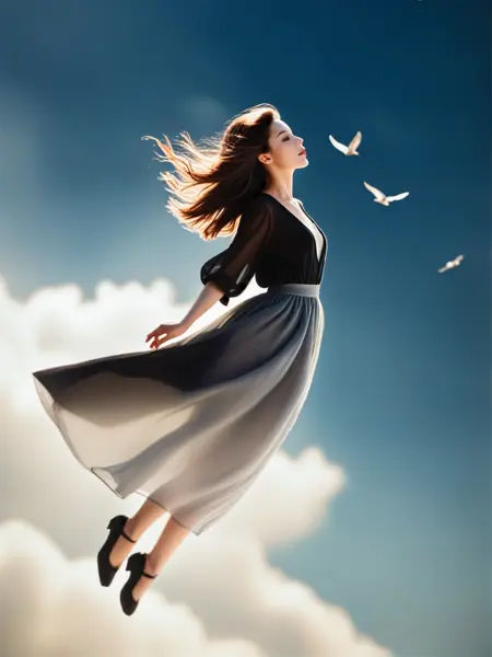 if you want 【realistic】style, use 【long hair, wind, floating】or some thing to describe your image.