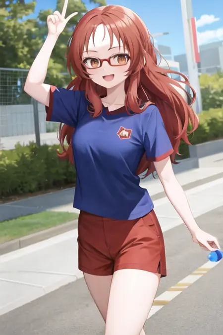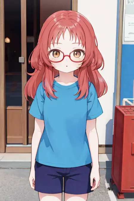 aimie, long hair, red hair, brown eyes, glasses, red-framed eyewear,