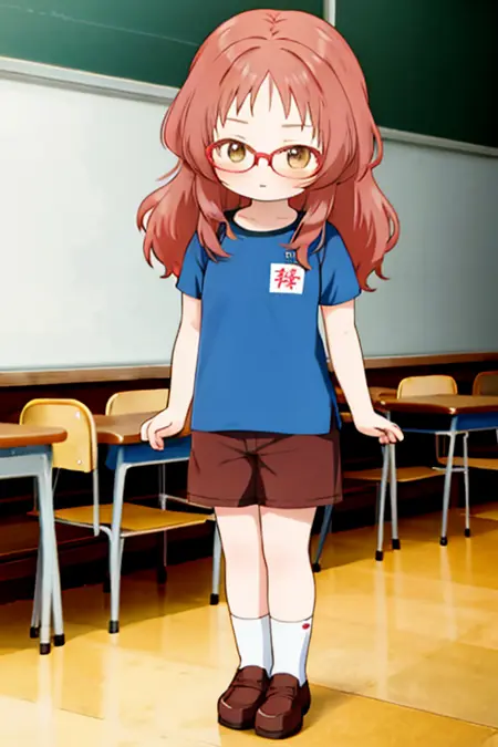 -You can summon her just using aimie, and she will come out with her default school uniform, you can use squinting tag to make her eyes squint, and use glasses to summon her glasses
