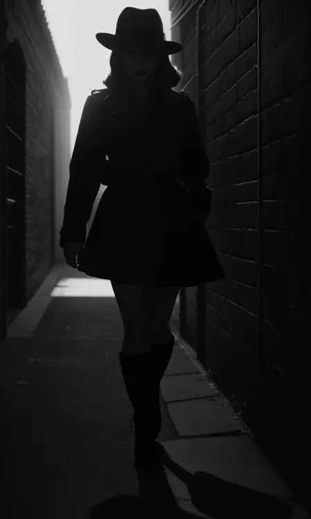 このLoRAは、クラシック・ノワールの美学——服装、人物、照明、カメラワーク、時代背景——を再現するように設計されています。