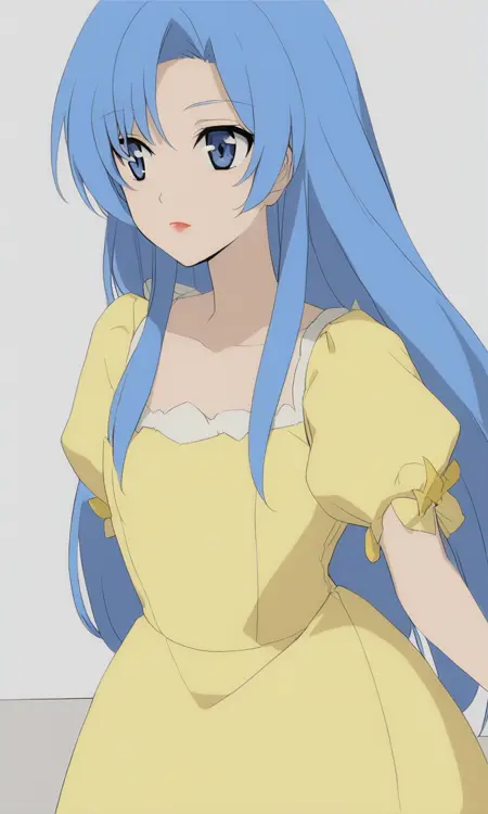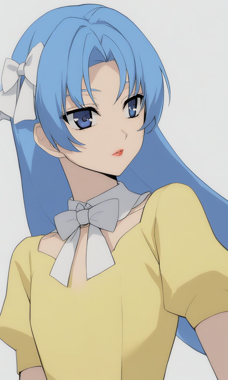 Yellow Dress: yellow dress, white collar, white bow on the chest