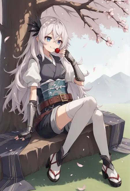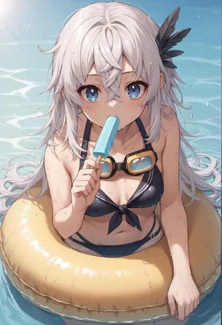 Common: white hair, long hair, messy hair, blue eyes, feather hair ornament,