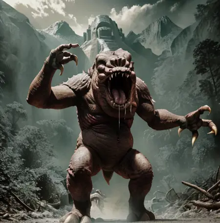 데이터셋을 수정하여 모든 이미지가 훈련에 사용되도록 했으며, 트리거 단어를 swrncrmnst로 변경했습니다. 이제 몬스터의 종류가 더 다양해졌지만, 여전히 사실적인 모델에서 이중 턱이 생성되는 문제가 큽니다.