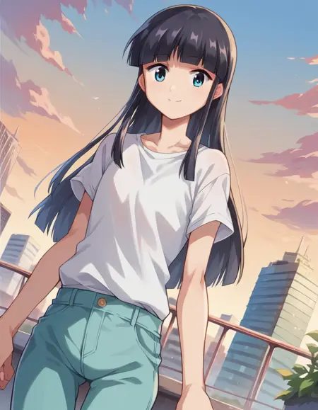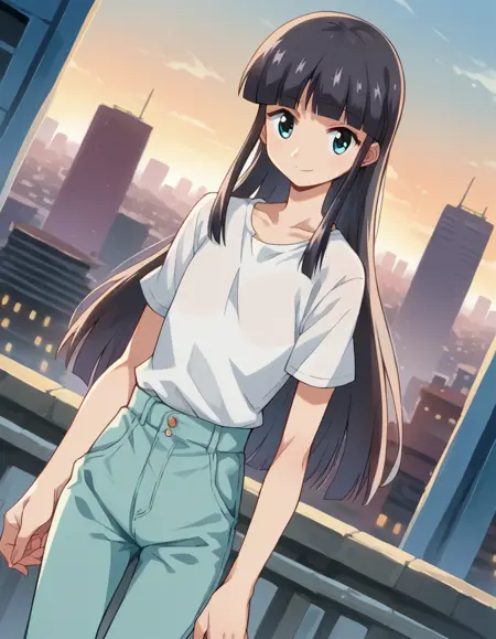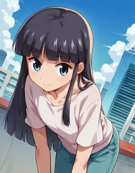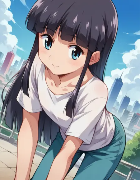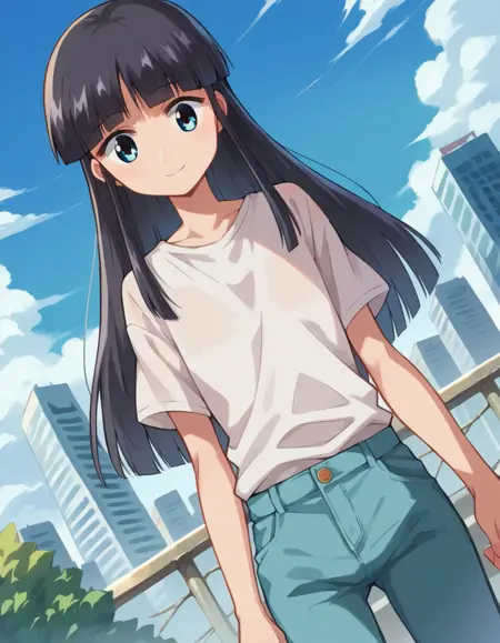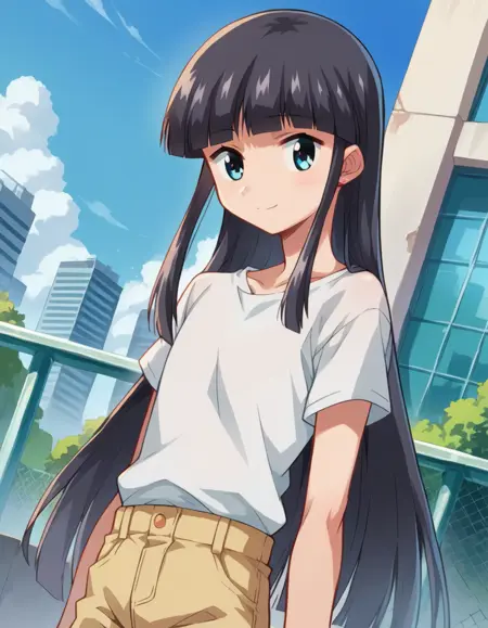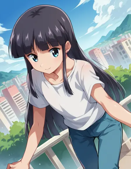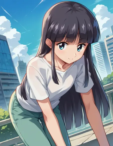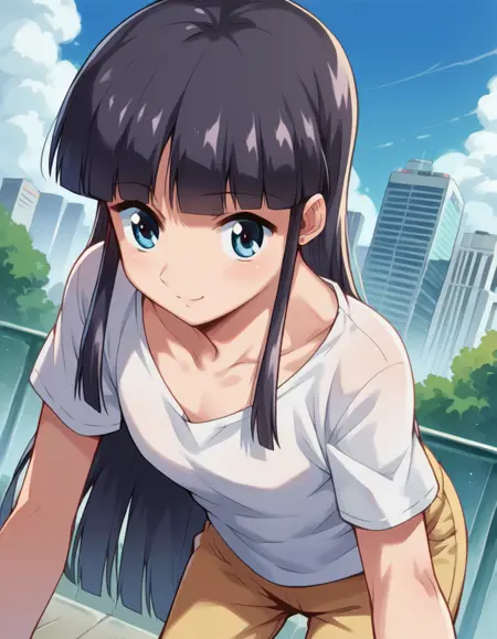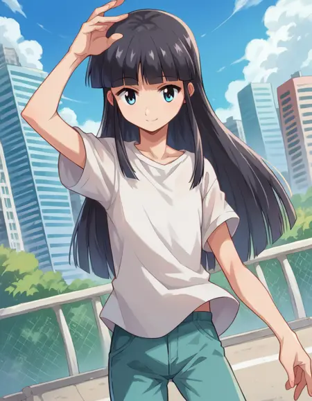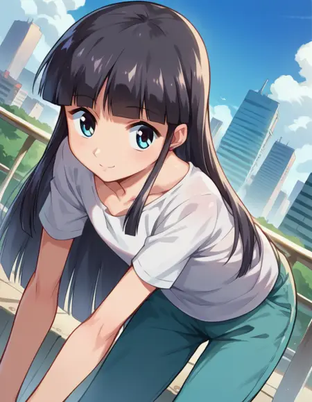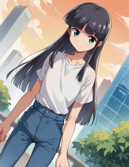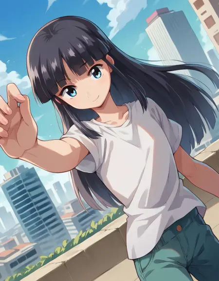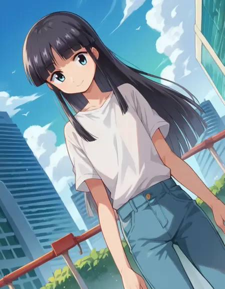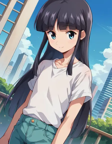coco, long hair, blue eyes, black hair, bangs, blunt bangs, sidelocks,