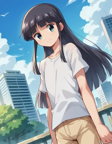 coco, 긴 머리, 파란 눈, 검은 머리, 앞머리, 둔한 앞머리, 측면 머리카락,