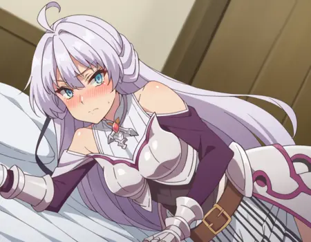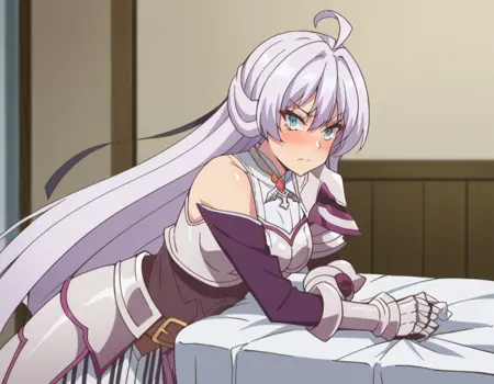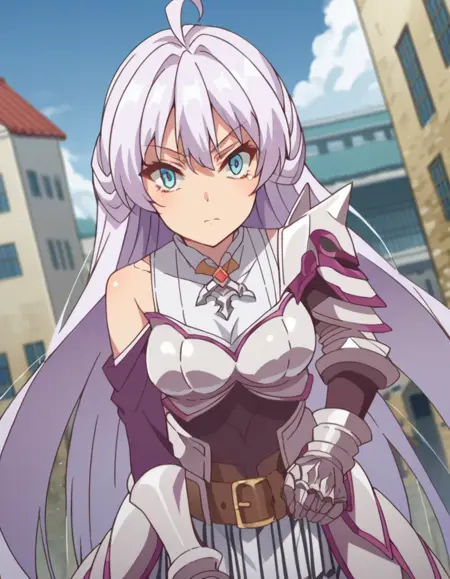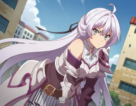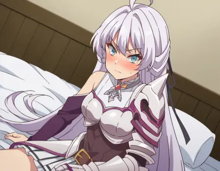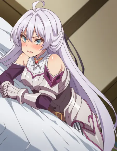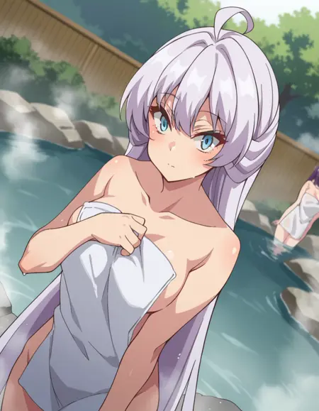 kureha crylet, long hair, bangs, blue eyes, very long hair, ahoge, white hair,