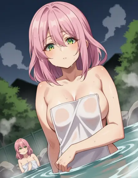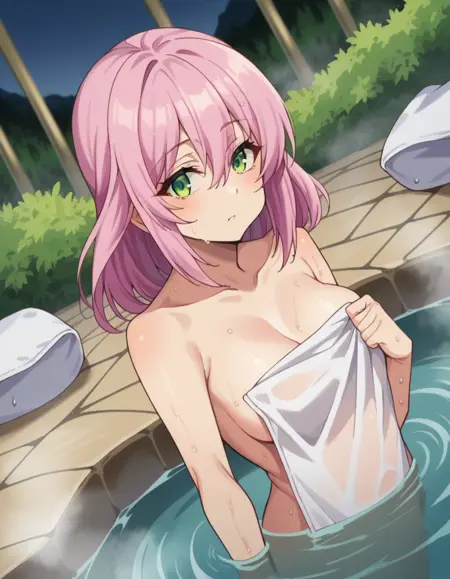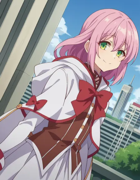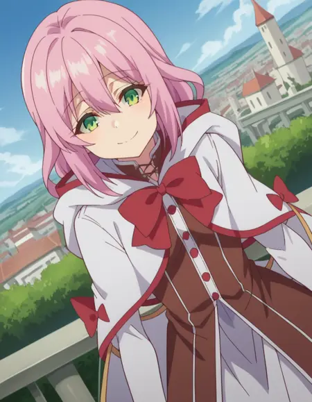 norn clatalissa jioral, long hair, hair between eyes, green eyes, pink hair,