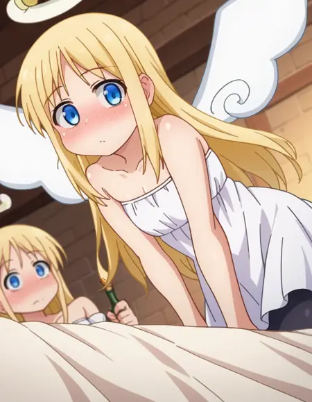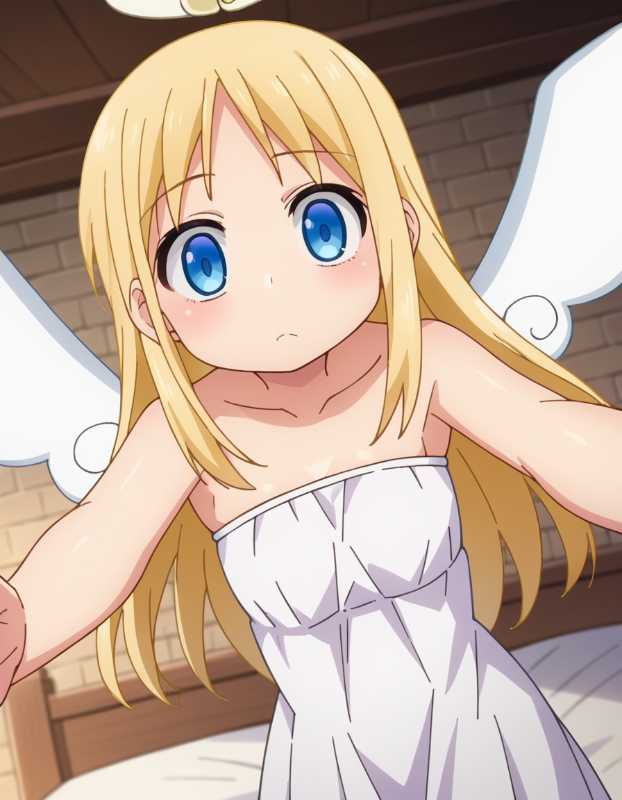 ドレス, 肩を露出, 锁骨, 翼, 白いドレス, レースなし, 希望の輪, レースなしのドレス, 天使の翼, 白い翼, 天使,