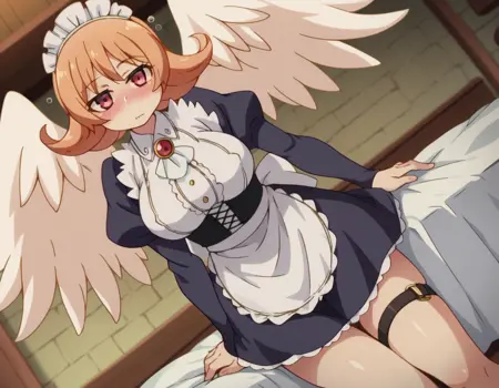 长袖,连衣裙,珠宝,荷叶边,翅膀,蓬松袖子,围裙,女仆,女仆头饰,大腿绑带,朱丽叶袖,胸针,白色围裙,羽毛翅膀,女仆围裙,蓬松长袖,白色翅膀,