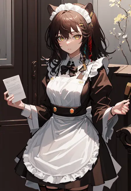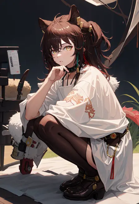 トリガーワードはlunacub_arknights、削除されたタグはanimal_ears, yellow_eyes, brown_hair, wolf_ears, long_hair, wolf_girl, breasts, tail, hair_between_eyes, wolf_tailです。あるときキャラクターの一部の特徴(例:髪の色)が安定しない場合は、これらのタグをプロンプトに追加してください。