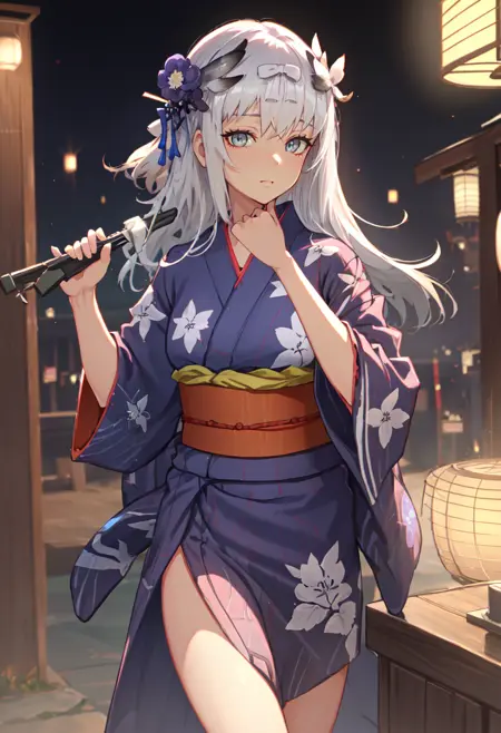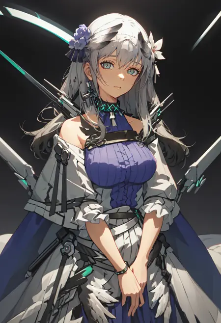 - The pruned character tags are long hair, breasts, hair ornament, grey hair, hair flower, white hair. You can add them into prompts when core features (e.g. hair color) of character is not so stable.