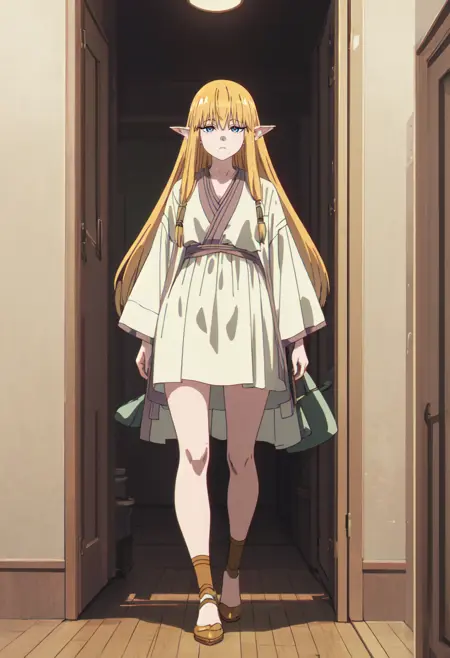 The trigger word is serie_sousounofrieren, and the pruned tags are long_hair, pointy_ears, blonde_hair, sidelocks. When some features (e.g. hair color) are not so stable at some times, you can add these them into your prompt.