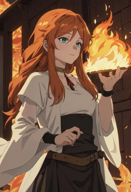 The trigger word is flamme_sousounofrieren, and the pruned tags are long_hair, green_eyes, brown_hair, orange_hair, earrings, braid. When some features (e.g. hair color) are not so stable at some times, you can add these them into your prompt.