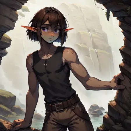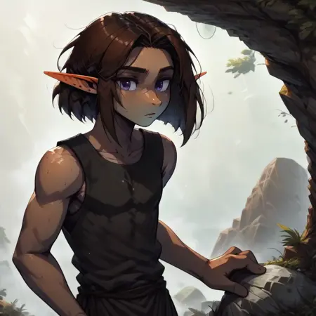 Mandatory are the trigger words, [LAPANYA, POINTY EARS, SNOUT NOSE, FLAT CHEST, 3 FINGERS 1 THUMB], for proper generation.