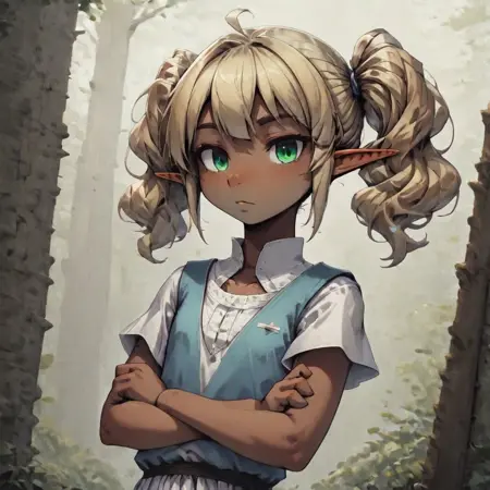 为了正确生成,必须使用触发词:[LAPANYA, 尖耳朵, 鼻吻, 平胸, 三指一拇指]。