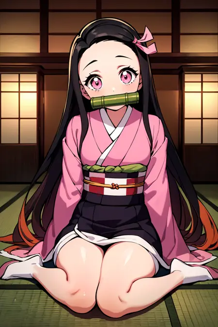 彼女を呼び出すには、以下のようなタグを使用してください:nezuko, kamado nezuko, long hair, black hair, pink eyes, multicolored hair, hair ribbon, pink kimono