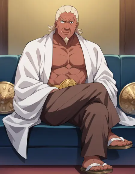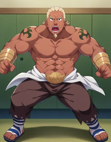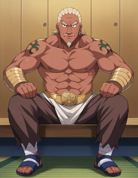 sandals, pants, brown pants, tattoo, muscular, abs, pectorals, muscular male, topless male,