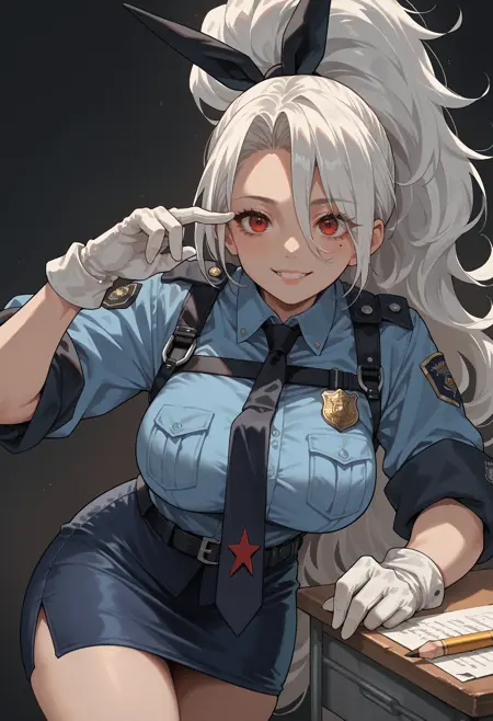 外見: (髪が目を覆う場合や、目の下のほくろに必要かもしれません); 赤い目、目の下のほくろ、片方の目を覆う髪、白い髪。