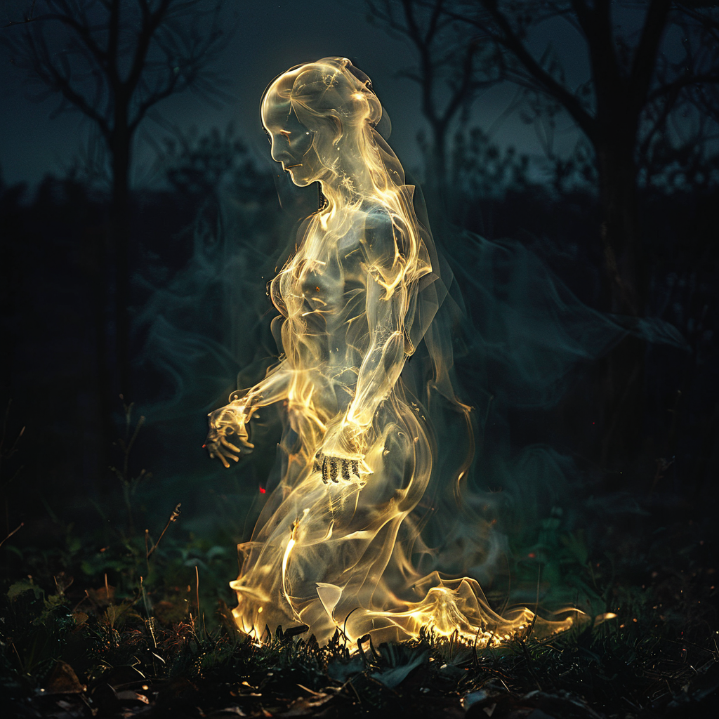 A strange gesture of light in a vaguely humanoid form. They move quickly but with elegance, speed and grace, and without a sound. You feel a strong pulling to get closer to the form and to follow in their strange movements. When still, they seem almost life-like, but as they move faster and faster, their form becomes more abstract.